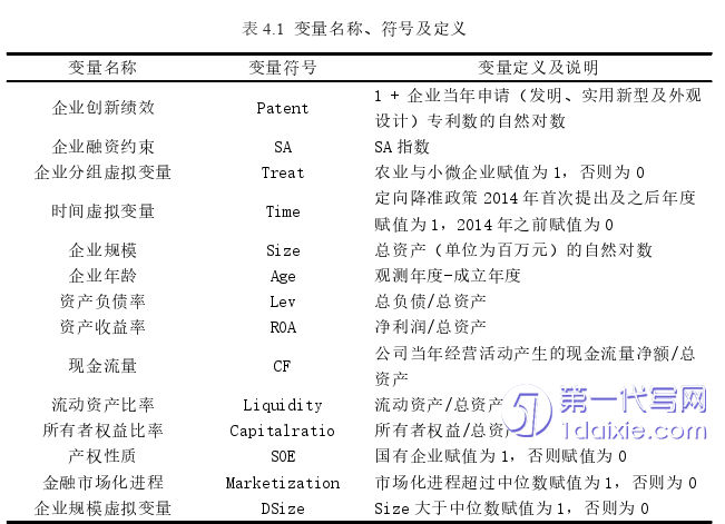 本篇论文的主旨在于探讨定向降准政策对创新绩效的影响机制,旨在优化中小企业融资环境、提升企业创新绩效以及更好的促进企业发展,为我国在创新发展模式上提供相关的理论指导。此外,融资约束的存在妨碍了企业创新活动的发展,而缓解融资约束问题能够有效助力企业纾困。所以,探究定向降准政策对创新绩效的作用机制意义重大,当然融资约束的中介传导作用同样不可忽视。本篇论文研究主旨具备理论以及现实参考价值。