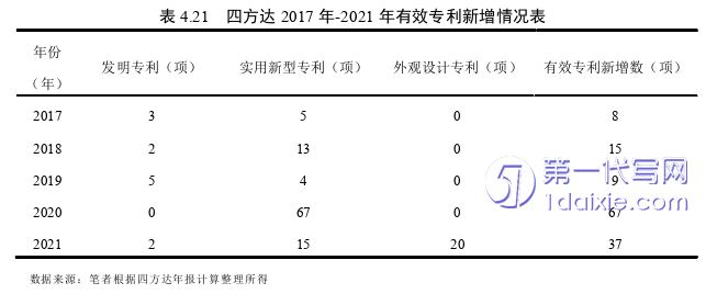 第四章,案例分析。先对四方达进行介绍,描述四方达“零成本”员工持股计划的内容、实施过程和实施动机。再对其“零成本”员工持股计划具体实施效果进行研究,分别从市场反应、员工激励、公司治理、经营绩效和创新绩效这五个方面展开分析。