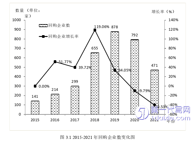 2015年前我国回购活动主要以政府为主导,具有回购规模小、频次低等特点,而在2015年后政府开始放松回购管制,越来越多的企业将回购纳入决策范畴。我国股票市场第一次真正意义上的回购热潮源于2018年股市震荡,当年经济结构严重失衡、生产过剩,爆发严重的经济危机,这些动荡因素传导到股市,使得股价暴跌。各企业为了打破股价持续下跌的窘迫处境,纷纷实施股票回购计划,以向股票市场传递价值低估的积极信号,提高投资者信心。此外2018年《公司法》的修正直接扩充了股票回购的适用范畴,如上市企业为维护企业价值与股东权益所必须、转换上市企业发行的可转换为股票的企业债权等,这间接激发了回购积极性。当年美的集团就发布了价值40亿的回购预案,将股票回购金额推向了新的高度。据统计2018年股票回购股数为115.85亿股,较上年增长率高达298.35%,而2020年达到近十年的最高回购量117.40亿股。2021年新冠疫情进一步蔓延,企业正常经营受到干扰,即使在此境况下总体回购规模仍然保持较高水平。2022年又开始爆发新一轮的回购浪潮,据报告截至当年9月,A股市场已有约1000家企业执行股票回购计划,回购总金额高达700亿元左右。近期阿里巴巴将回购规模从150亿美元扩充至250亿美元,刷新了中概股最高回购金额记录,小米集团在董事会决议中也推出100亿港元的回购计划,中国平安、中国石化、京东方A、顺丰控股也纷纷加入回购队伍,再一次把回购热潮推向了顶峰。