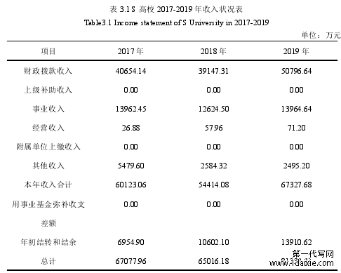 (1)S 高校整体的预算收支状况正常。从预算收入来源和支出项目来看,财政拨款收入和教育支出是 S 高校当下的第一大预算收入来源和支出去向。S 高校2017-2019 年的预算收入和支出均呈现了波动变化的状况,未出现预算收不抵支的现象。从 S 高校近三年的收支比来看,均大于 1,说明 S 高校的财务状况正常且财政状况良好。