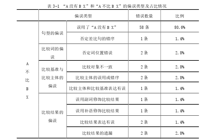 4.1.1 句法结构的角度分析“A 没有 B X”的偏误类型 ............... 33