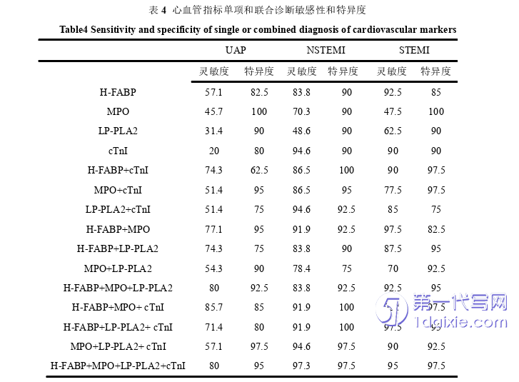 本研究通过检测H-FABP、MPO、LP-PLA2水平,评估其在UAP、NSTEMI、STEMI患者中诊断价值。试图寻找诊断ACS高灵敏度、高特异性组合。