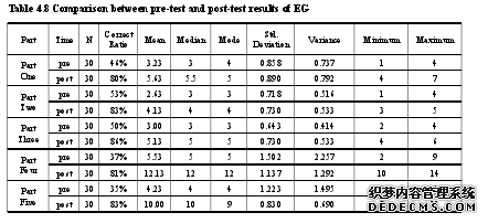 The experiment begins in February 2013 and ended in October 2013. It lasts 6months. Data for the study are collected before the end of November, 2013. Items in thequestionnaires and the reading competence tests are analyzed separately. The results of theBE reading tests are input into the computer and the statistical software SPSS 16.0(Statistical Packages for Social Science) is used to make an analysis. Mean, standarddeviation was calculated and T-test for independent samples was also conducted so as tofind out whether the difference between two means is significant. In this chapter, the datacollected from questionnaire surveys and BE reading competence tests will be analyzedand discussed to seek for answers to the research questions raised in this thesis. The designed questionnaires are to check the attitudes of students from EG and CGabout BE reading learning. Before doing this survey, students are informed that theiranswers would not be connected with their final grades of the English class, and theirgenuine answers would be appreciated. Consequently, the reliability of this questionnaireis enhanced.
