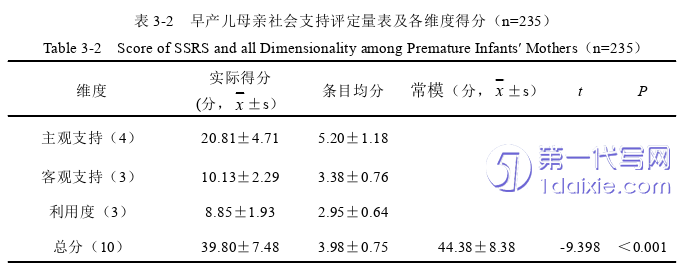 4.2早产儿母亲社会支持现状分析…...……………………34