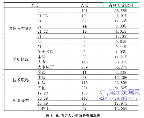 二、HL酒店岗位设置与人力资源基本情况........................20
