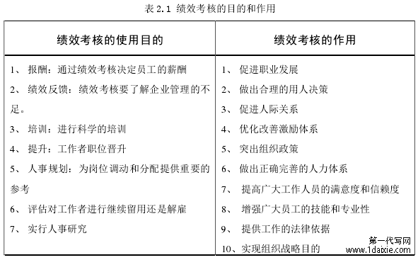 在管理的同时,组织考核的具体目标包括两点:一是了解员工的工作流程和表现,二是实现人才选拔,挖掘员工潜能[13]。绩效管理考核的目的研究主要涵盖了报酬、培训、人事规划等要求,以此可以达到推动公司员工、企业社会共同学习进步的目的。其目的和作用如下: