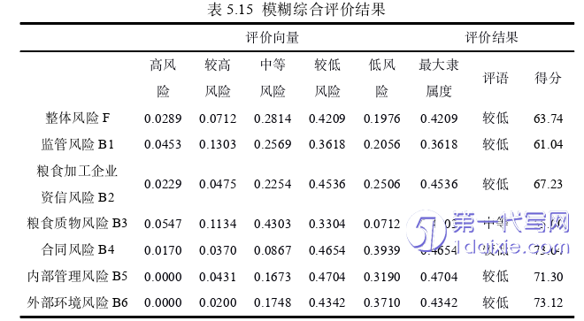 (2)在对本文所选方法进行合理性分析的基础上,运用AHP-熵权法进行组合赋权,确定指标体系的综合权重,再运用模糊综合评价法,对面向粮食加工企业的物流金融风险进行评判。这种将主客观相结合的组合赋权法,既减少了主观判断性,又能反映各评价指标之间的相互作用关系,使评价结果更加科学合理。