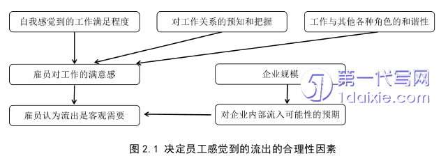 19世纪60年代,在《企业论》一书中,美国学者马奇和西蒙(March&Simon)提出了关于员工流失的模型——马奇和西蒙模型,又称“参与者决定”模型[42]。在研究员工流失中,该模型提出较早,且影响较大,广泛运用于员工流失的管理。该理论的包含两个模型,员工感觉到的从企业中流出的合理性,是首个模型分析。该模型指出,员工对工作的满意程度,员工对企业间流动的可能性估计,对员工流失具有重要影响,且起到决定性的因素(如图2.1所示)。