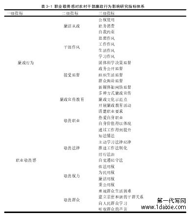 第三部分农村干部职业敬畏感调查研究设计。基于以上理论和实地调研,着重构建符合当代社会发展的职业敬畏感对农村干部廉政行为影响指标体系。根据指标体系设计所需要的问卷和访谈提纲。