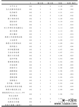 运用统计分析软件 SPSS26.0 对问卷进行描述统计分析,可以看出怒江州泸水市基层公务员的胜任水平还是比较理想的。